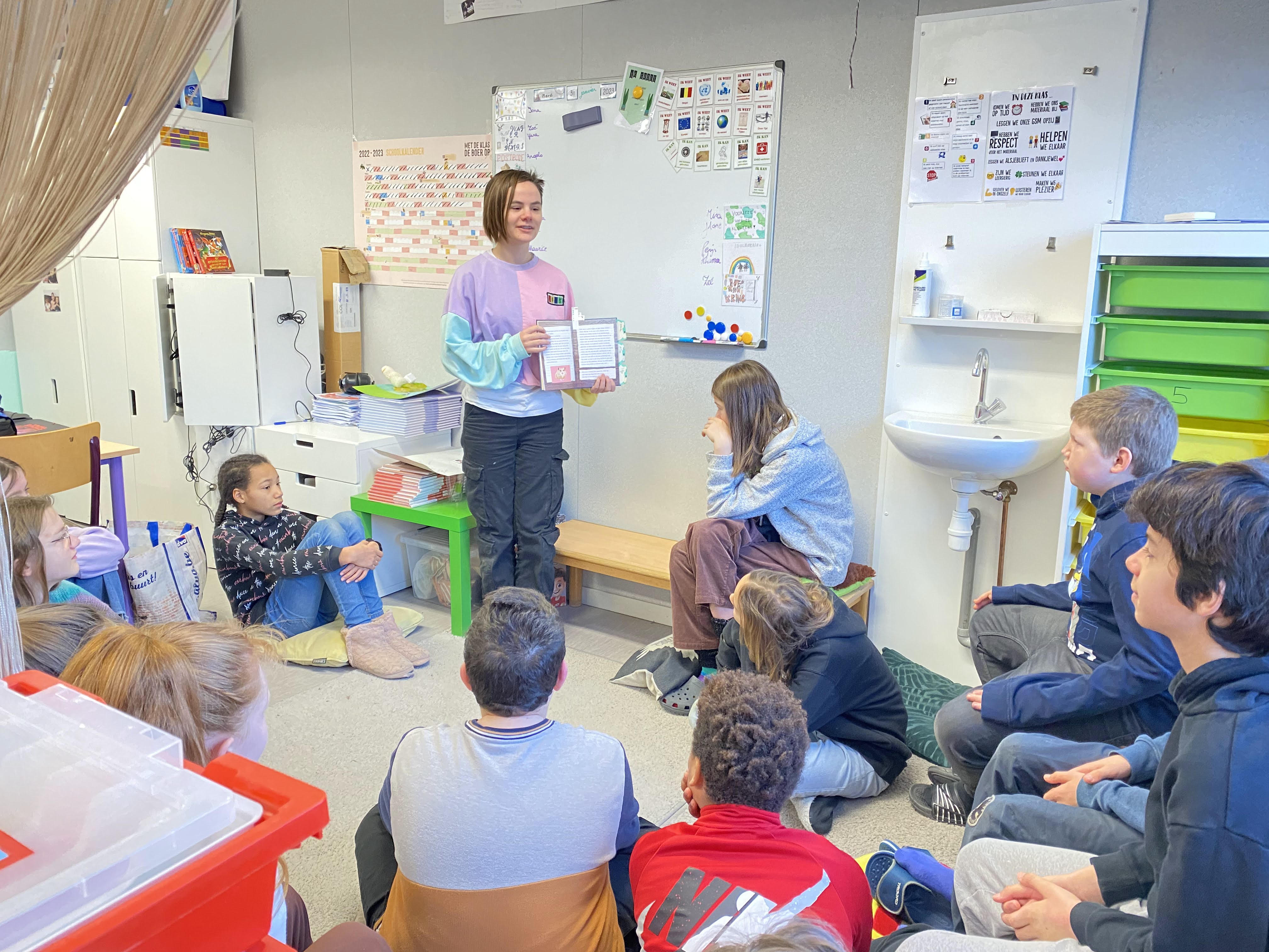 Er waren ook twee boekenkringen. Norah stelde een boek voor aan de hand van een zelfgemaakte trailer. Zo mooi verfilmd! Zoé stelde haar lievelingsboek voor die ze leerde kennen door de leesjury.